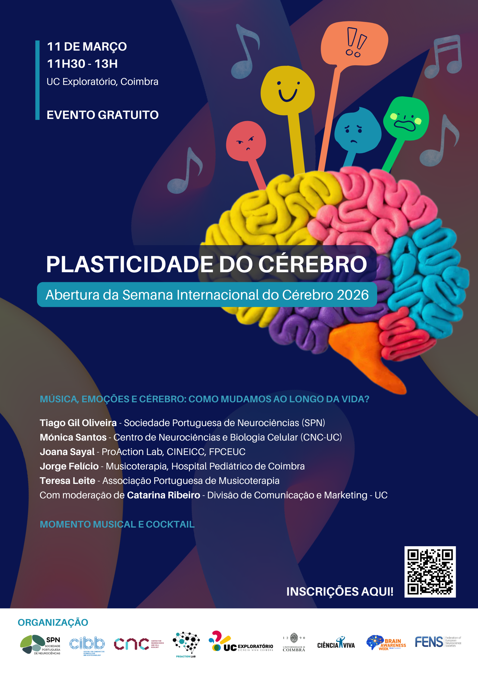 🧠 Organização: Sociedade Portuguesa de Neurociências (SPN), Centro de Neurociências e Biologia Celular (CNC-UC, CiBB), ProAction Lab (CINEICC), UC Exploratório - Centro de Ciência Viva da Universidade de Coimbra
